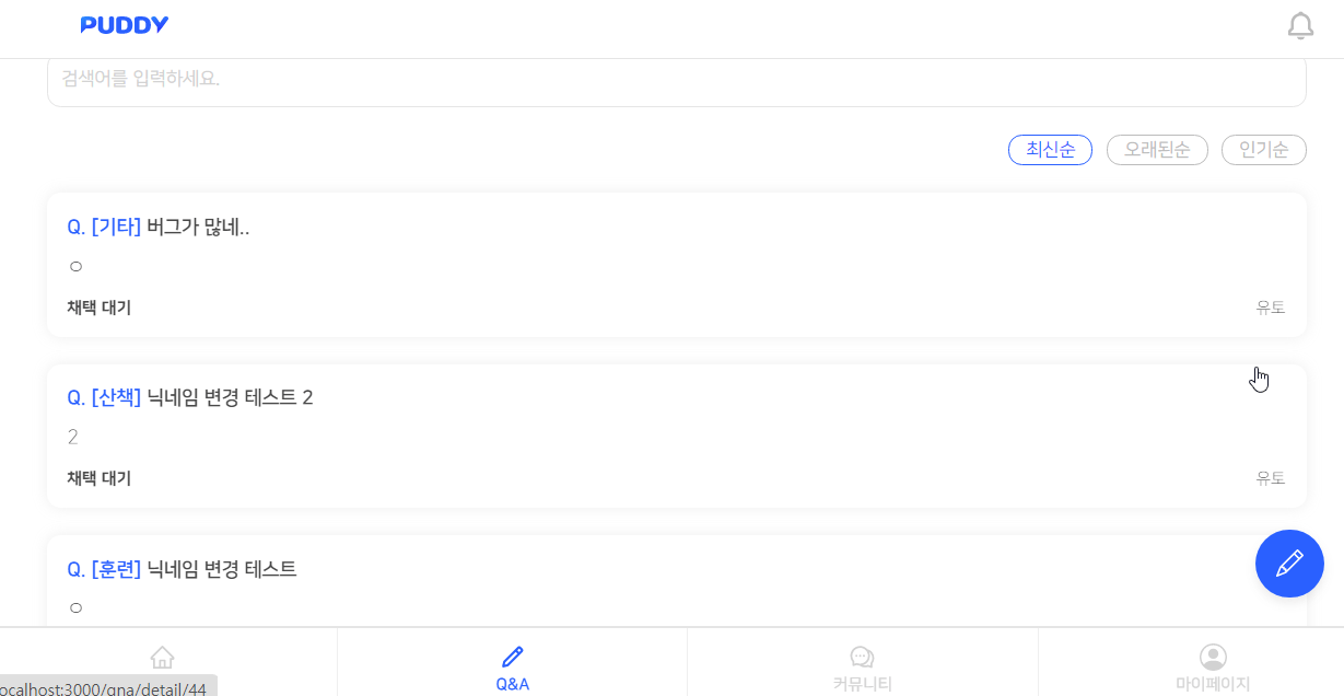 닉네임을 변경했을 때 게시글 닉네임도 함께 변경된 것은 확인했는데